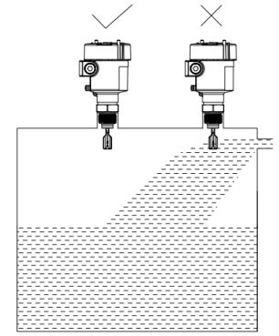 如圖2,選擇音叉液位開關的安裝位置時,應避免由于安裝在入料口位置而造成的測量誤差,甚至損壞儀表。