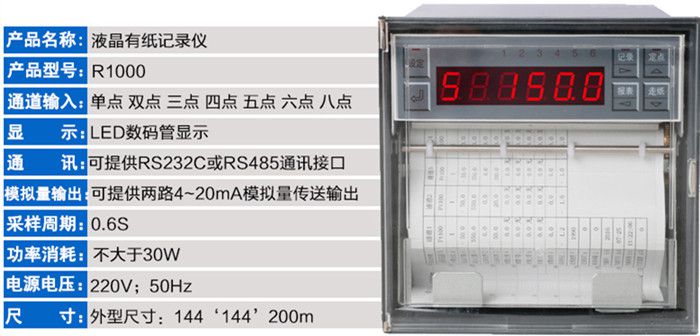 LK-R1000有紙記錄儀8路萬能輸入液晶顯示有紙記錄儀,可輸入標準電流、標準電壓、熱電偶、熱電阻等多種信號。具有傳感器配電輸出、繼電器報警輸出功能;采用高精度熱敏打印機,實現數據、曲線和混合打??;具有高清晰OLED液晶顯示功能;獨立的紙倉設計,使打印紙安裝方便快捷。